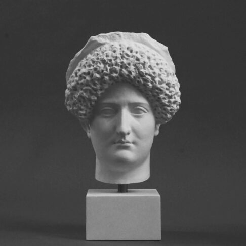 Jünglingskopf, sogenannter Tête de Bénévent, historischer Abguss mit runden Sockel, darauf die Formennummer